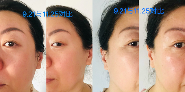 开始第一周,精华质地丝滑好吸收,眼周水润,保湿力是最直接、最毋庸置疑的体验。即使长时间在空调房或面对电子屏幕,也不易出现拔干感,它都表现得可靠且舒适。第二周,能观察到肌肤整体细腻度有提升,毛孔视觉上显得更规整。那种因干燥或轻微老化带来的“松垮感”会有所改善,取而代之的是一种由内而外的“撑起来”的紧实感,尤其在轮廓线条和苹果肌区域感受更明显。