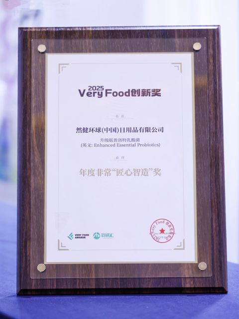 然健环球升级版普洛特乳酸菌荣获2025 Very Food“匠心智造奖”